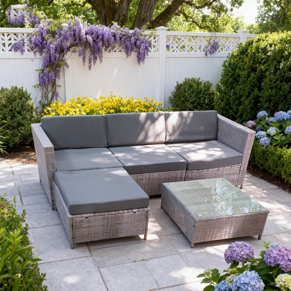 8 Seater Garden Sofa Furniture Set with Chair, Stool and Dining Table (6141-B)