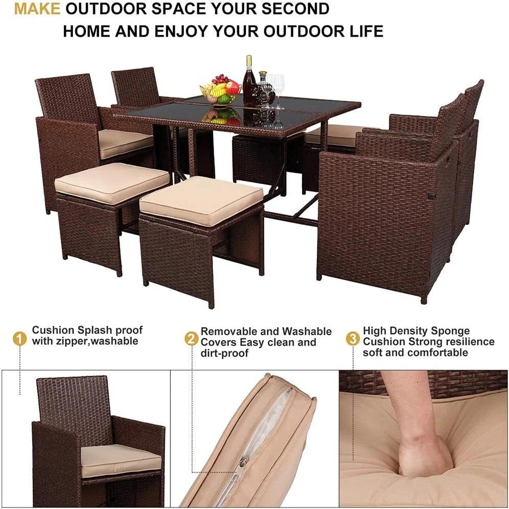 - Weather-resistant wicker, tempered glass, and padded cushions with removable covers allow this garden table and chairs for easy cleaning and maintenance. Note: It is not recommended to expose cushions to rain or snow.