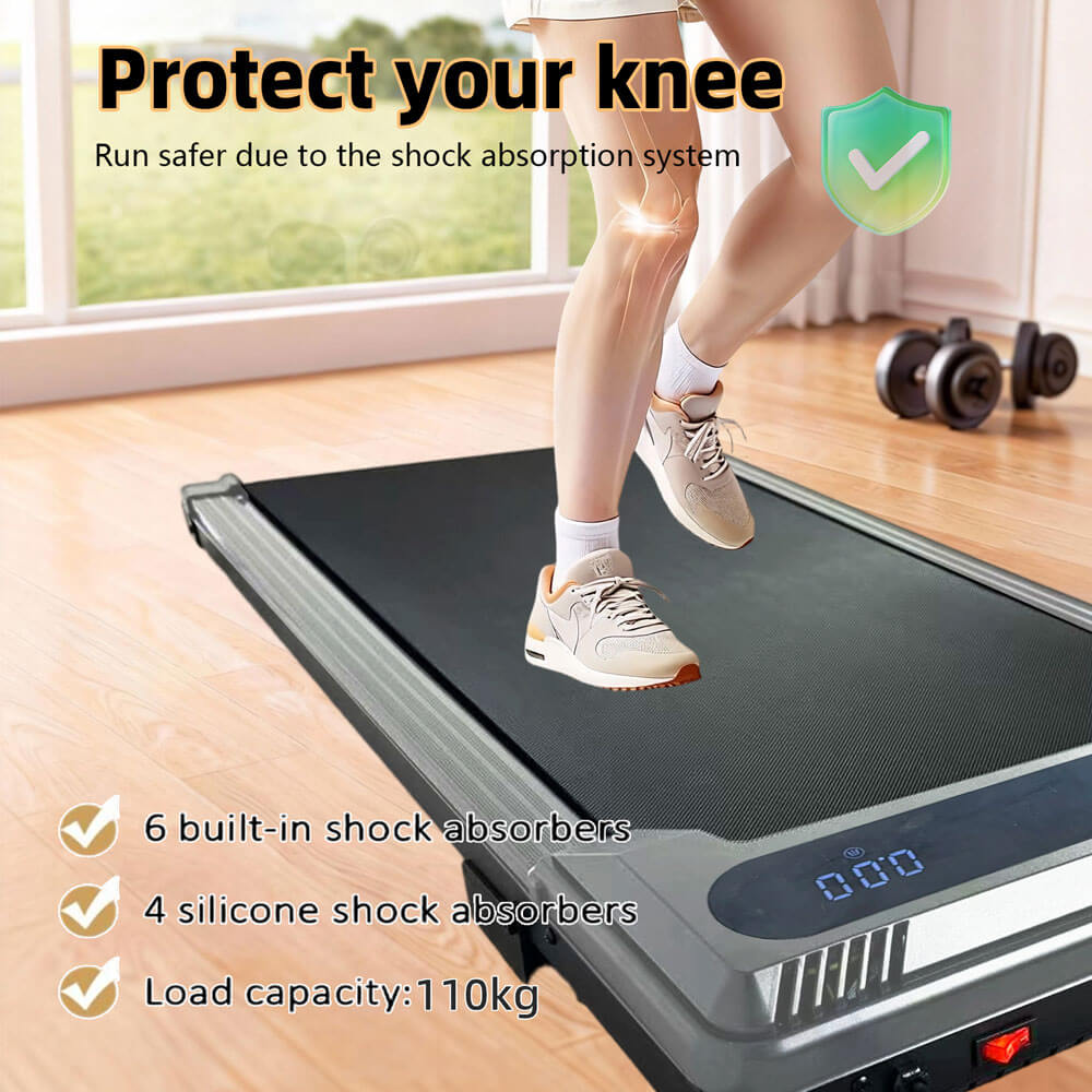 1. Slim, Space-Saving Design — Ultra-thin and lightweight construction makes this quiet treadmill easy to store under a bed, sofa, or in small spaces when not in use.
