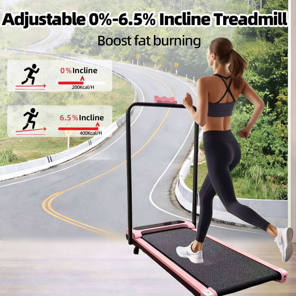 Compact 2.0HP Treadmill with Handrails – No Assembly, 6.5% Manual Incline, 110kg Capacity