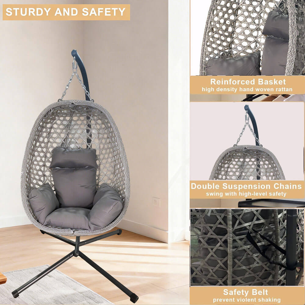 Foldable Magic Leaf Vine Egg Hanging Chair with Stand, Double Chain Support, 150kg Load, Padded Cushion
