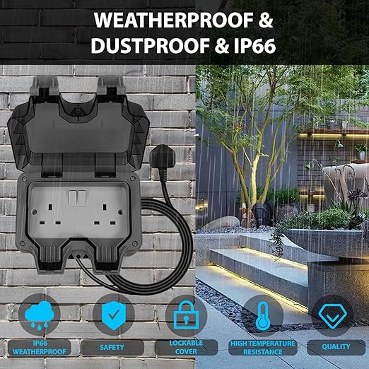 6. Ideal for Multiple Outdoor Uses — 13A dual sockets with individual switches, perfect for powering garden tools, pressure washers, outdoor lighting and more in gardens, garages and outdoor workspaces.