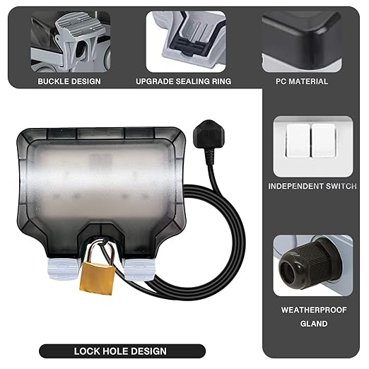 4. Lockable Clear Safety Cover — A strong, transparent cover that allows safe use while sealed. Built-in locking holes let you add a padlock to help prevent accidental opening or unauthorised use.