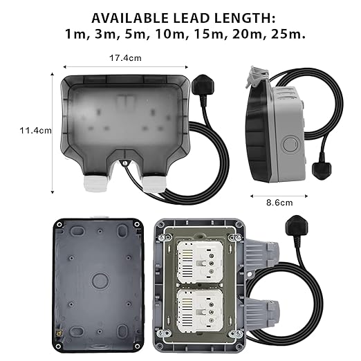 2. Easy Outdoor Power Access — Supplied with a pre-installed extension lead, allowing you to connect directly to an indoor socket without trailing cables through doors or windows. Available in lead lengths from 1m to 25m.