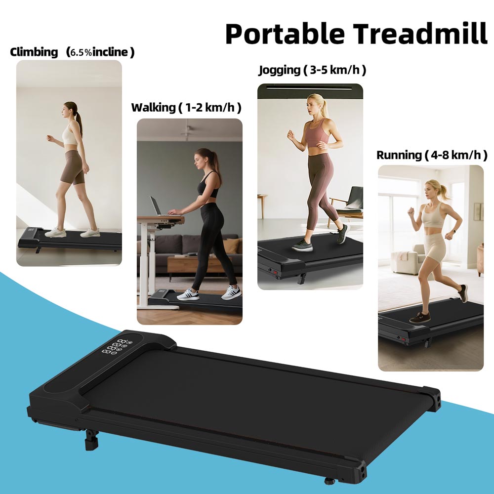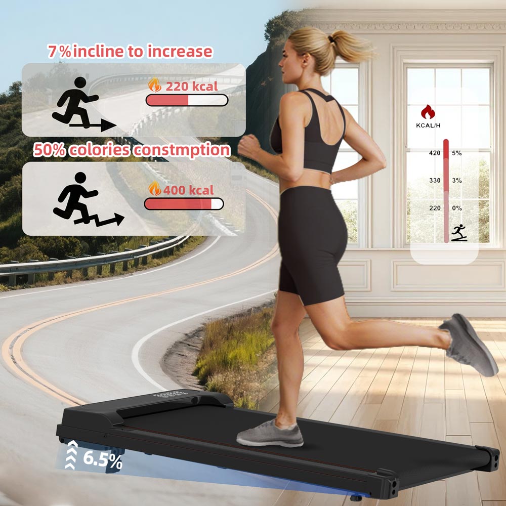 5. Comes with a wireless remote control for easy operation — adjust speed (1–8 km/h), start, stop, or switch modes with a simple click. Manual 6.5° incline lets you intensify your workout whenever you want.