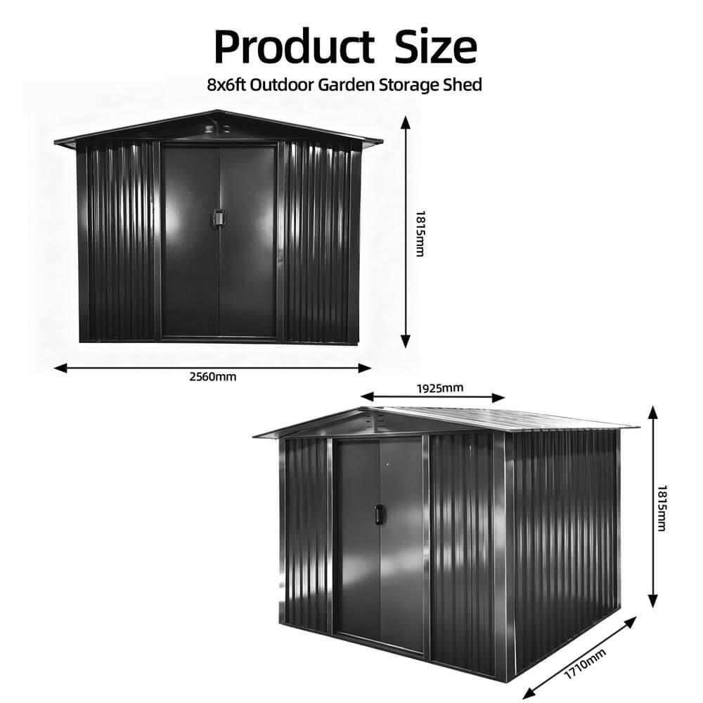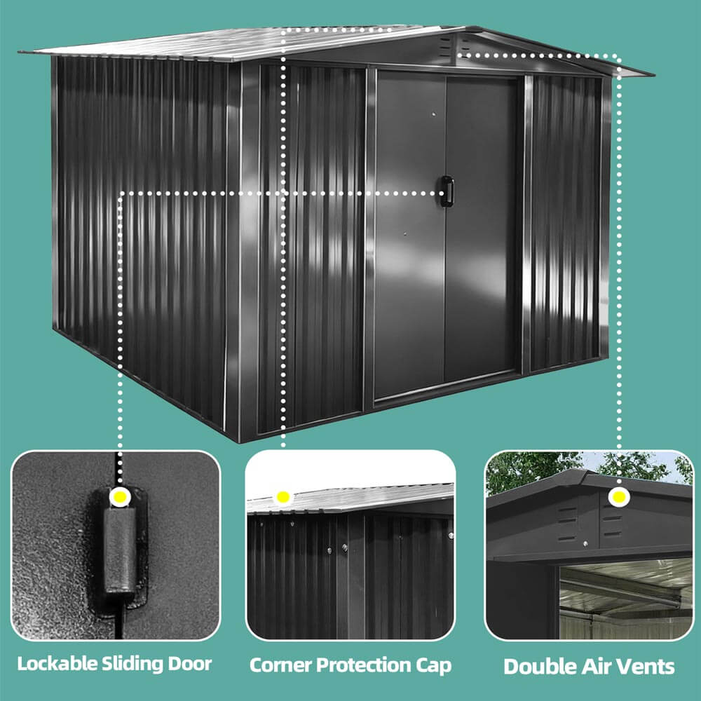 - High performance durable cheap metal sheds coming with 2 lockable sliding doors. Easy in and out. Front ventilation improves the air circulation and eliminates the strange odor efficiently.