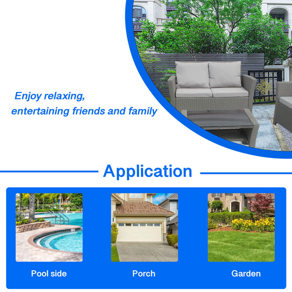 - Weather-resistant wicker, tempered glass, and padded cushions are easy-cleaning, no need too much maintenance.