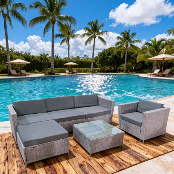 2. 6 seater garden sofa furniture with chair, stool, dining table (6141-B)