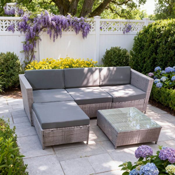 - this 4 seater garden sofa set comes with wide seats and comfortable thicker cushion. Plus with coffee table, this garden furniture set, like a real living room where comfort comes first, offers an oasis of comfort to family, friends and guests.