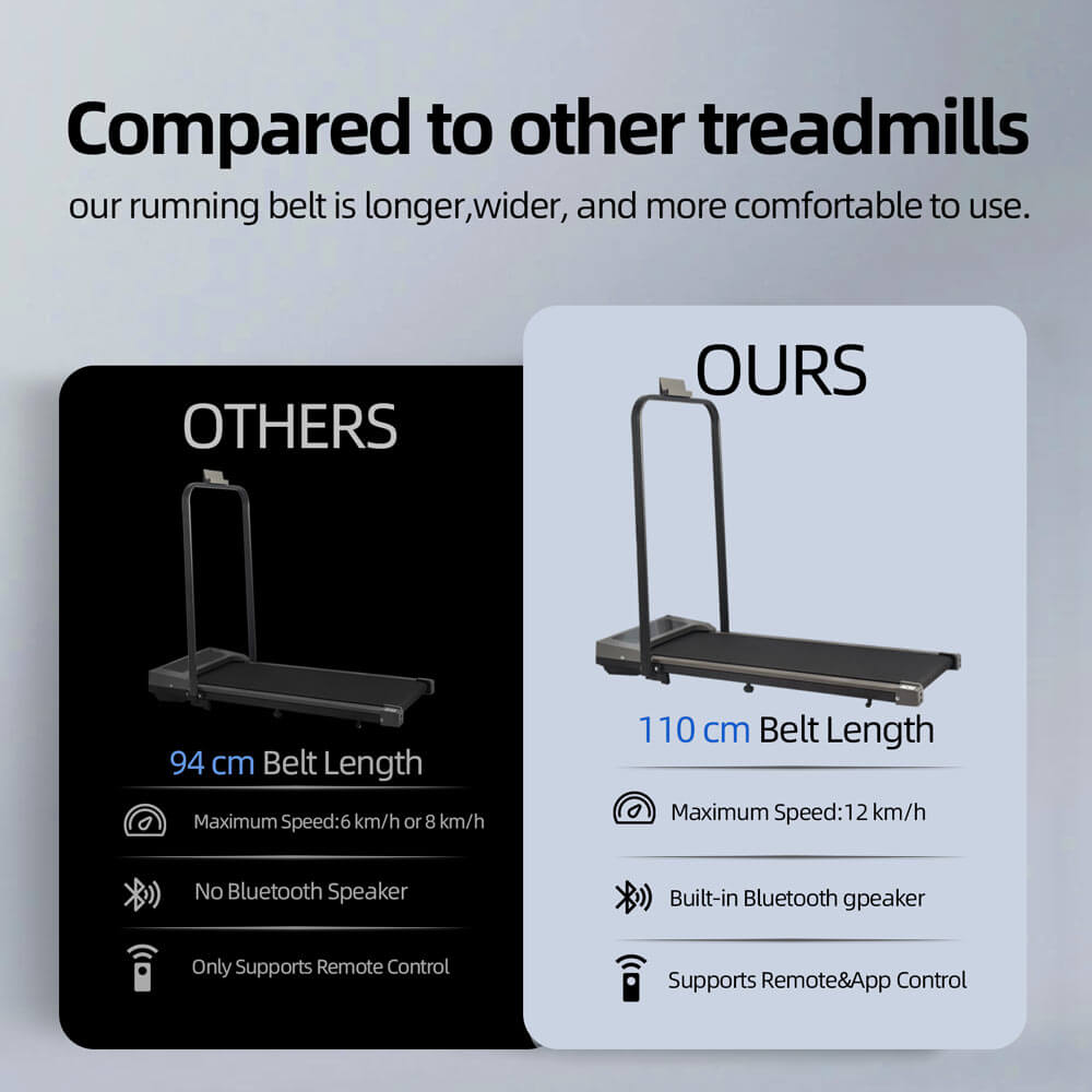 - Connect the under desk treadmill to your phone via Bluetooth, so you can listen to your music with others while you are exercising. The remote control is convenient to adjust the running speed, mode and program.